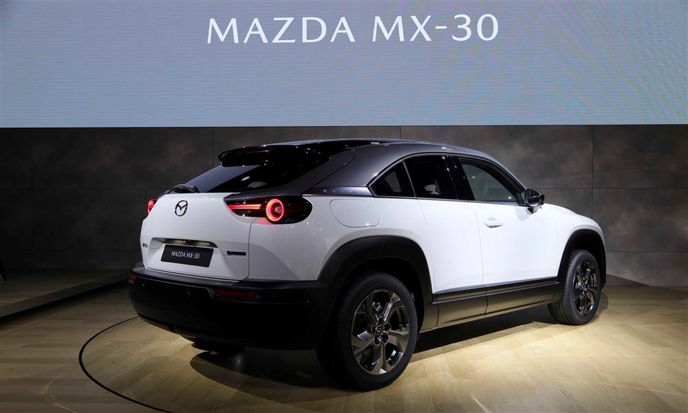 مازدا MX-30 الجديدة هي أول سيارة تجارية تعمل بالكهرباء من مازدا. ومن الواضح إنها تتخذ خطوط التصميم الخارجي من السيارات الأخرى في مجموعة مازدا، وتحديدا طرازات SUV مثل CX-5. لكن بالنظر إلى التصميم الجانبي، فإن خط السقف المنحني إلى الخلف يفسح المجال لطبيعة رياضية أكثر قليلاً عن طرازات SUV، التصميم رياضي الطابع يمتد إلى البابين الخلفيين المدمجين. في الداخل، لوحة القيادة تصميمها بسيط، لا يختلف عن تصميم Mazda3 كثيراً. وتحصل MX-30 على شاشة تعمل باللمس مقاس ٧ بوصات.