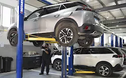 سيارة بيجو السيدان الرياضية زودت بمحرك ٤ سلندر سعة ١٦٠٠ سي سي بقوة ١٦٥ حصان، عزم أقصى ٢٤٠ نيوتن متر، يرتبط محركها بناقل حركة أوتوماتيكي من ٦ نقلات، وتبلغ سرعة السيارة القصوى ٢٢٠ كم/س، وتنطلق من الثبات لـ ١٠٠ كم/س خلال ٨.٧ ثانية، وتستهلك في المتوسط ٧ لترات من الوقود لكل ١٠٠ كم.