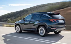 قدمت هيونداي موتورز أحدث أجيال توسان التي تتميز بتصميم خارجي جديد يعتمد على توجهات تصميم الشركة البارامترية، بداية من تصميم الشبكة الأمامية المثلث، ودمج المصابيح الأمامية بتقنية LED بفتحات الشبكة، مع انتفاخ الرفارف الأمامية والخلفية.