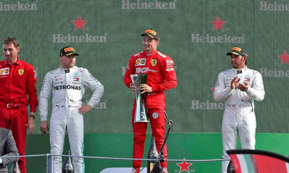 استطاع سائق فيرارى الشاب تشارلز لوكلير الحصول على مركز الصدارة فى سباق الجائزة الكبرى الإيطالى على حلبة مونزا الشهيرة بعد سباق مثير مليء بالعقوبات. انطلق لوكلير من المركز الأول بعد لفات تأهيلية ناجحة وانطلقت أغلبية السيارات على الإطارات الناعمة باستراتيجية لتغيير الإطارات فى إحدى اللفات فى منتصف السباق. منذ الانطلاق وحتى النهاية حافظ لوكلير على الصدارة أمام سائق مرسيدس المتمرس لويس هاميلتون الذى لا يزال يتصدر الترتيب العام للموسم. وكان فى أغلب الوقت فالتيرى بوتاس سائق مرسيدس فى المركز الثالث، مما كان يضع ضغطا بسبب وجود سيارتى مرسيدس خلفه ما يسمح لهم بالتناوب فى تغيير الإطارات دون خسارة الترتيب. سباق مونزا كان مليئا بالعقوبات بسبب حوادث التصادم، فى اللفة الثالثة تسبب حادث فى تغيير ترتيب ماكس فيرستابين سائق ريد بل لأنه اضطر إلى الخروج إلى قمرة الصيانة لتغيير الاكصدام الأمامى لسيارته. فى اللفة السابعة تسبب انزلاق سيارة فيرارى فى خروج سيبستيان فيتيل عن الحلبة وعندما عاد للسباق كان فى المركز الحادى عشر. وتسبب خروج فيتيل الخاطئ إلى الحلبة فى تعطيل السيارات وخطورة على السائقين الآخرين فى حصوله على أقصى عقوبة فى فورميولا -1 وهى التوقف لعدة ثوان.