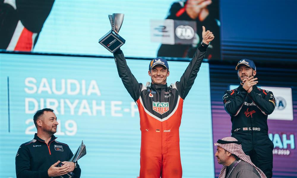 فريق تاج هوير بورشه بدأ موسم 2019 / 2020 من بطولة فورمولا e بداية رائعة. حل سائق بورشه أندريه لوتير في المركز الثاني بسيارته بورشه 99X الكهربائية رقم 36 في أول سباق لهذا الموسم على حلبة الدرعية في الرياض بالمملكة العربية السعودية.